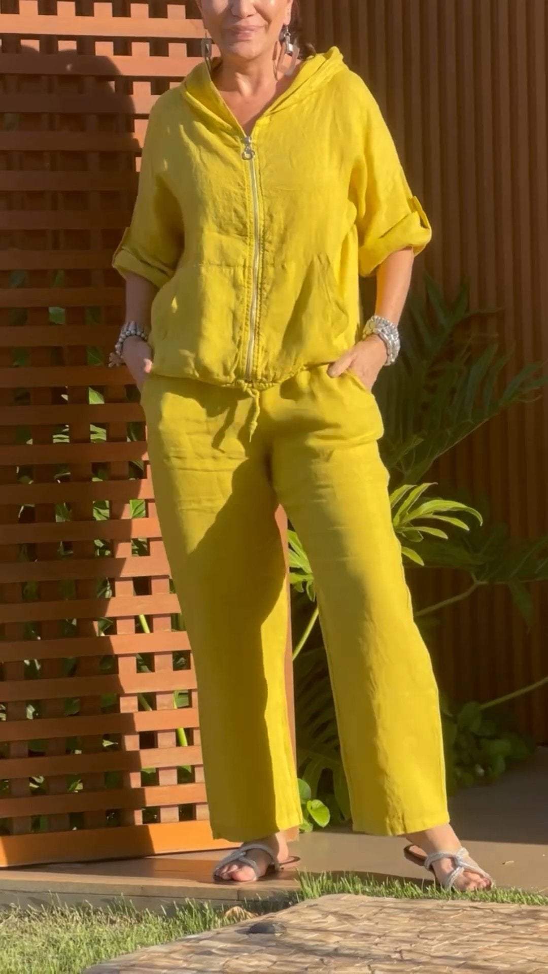 Dwuczęściowy garnitur z kapturem i zamkiem błyskawicznym z bawełny i lnu
