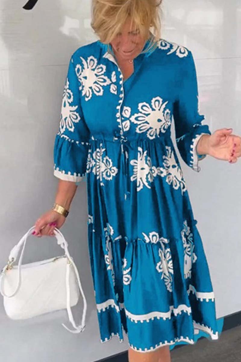 Casualowa sukienka z nadrukiem i rękawami 3/4